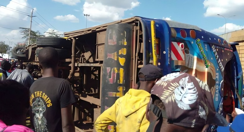 Un bus bondé de passagers se renverse à Roysambu sur la route de Thika !